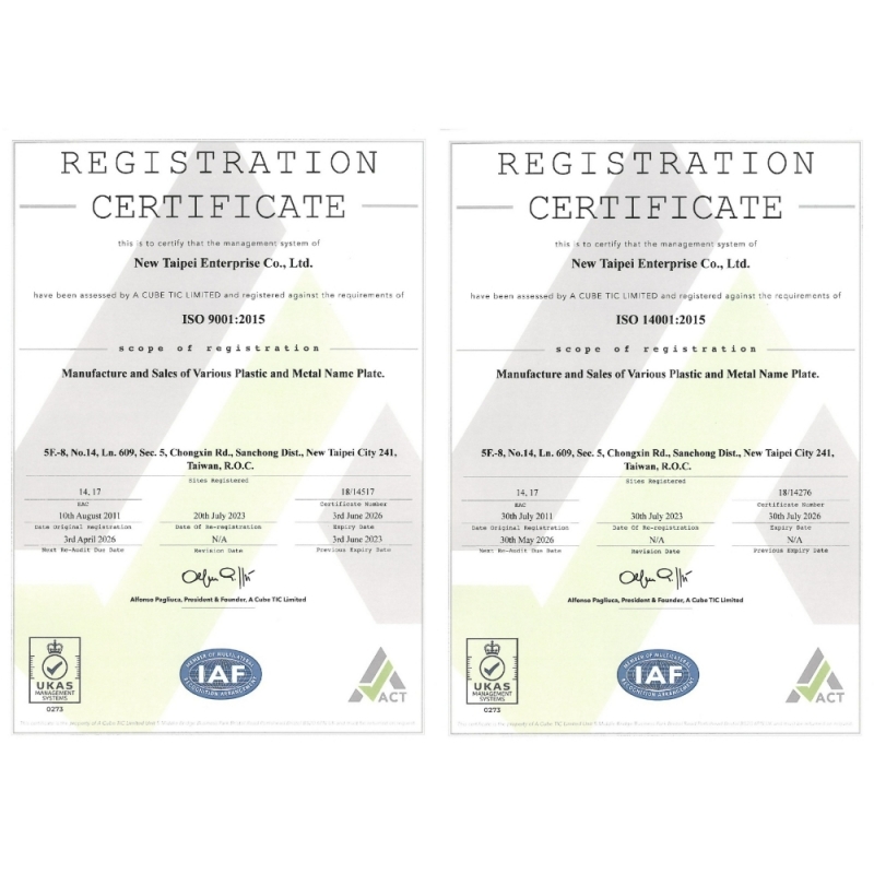 The Company passed the latest "ISO 9001-2015" quality management and "ISO 14001-2015" environmental